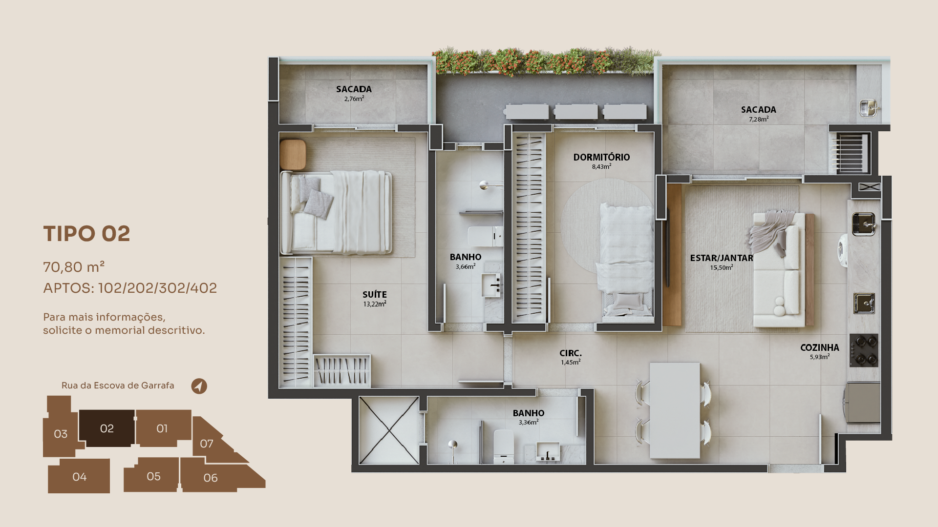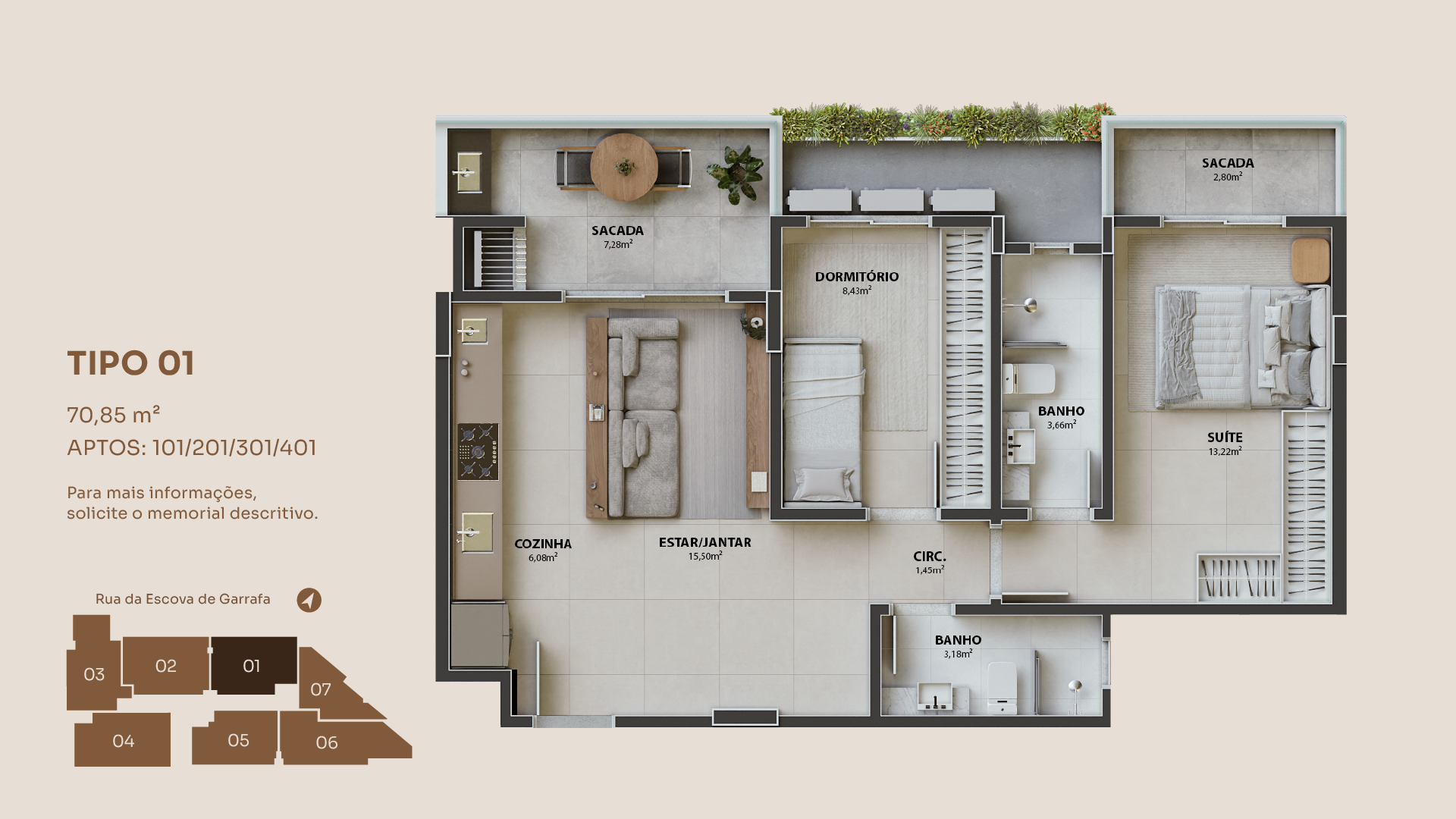 Este empreendimento sofisticado se integra harmoniosamente à natureza, proporcionando uma estrutura ecológica e prática para seu dia a dia.